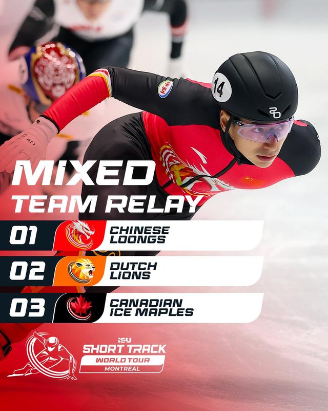 据新华社北京10月13日电 国际滑联官网消息,2025-2026赛季国际滑联短道速滑世界巡回赛暨米兰冬奥会资格赛蒙特利尔站当地时间12日收官,中国队在混合团体接力项目中夺冠,收获新赛季首枚金牌。