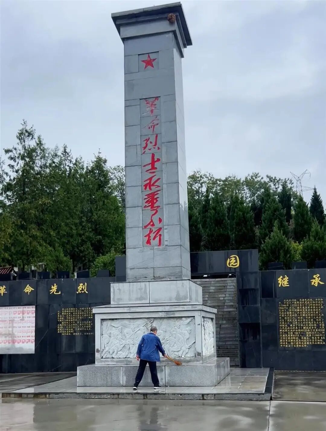 王开茂打扫陵园(受访者供图)